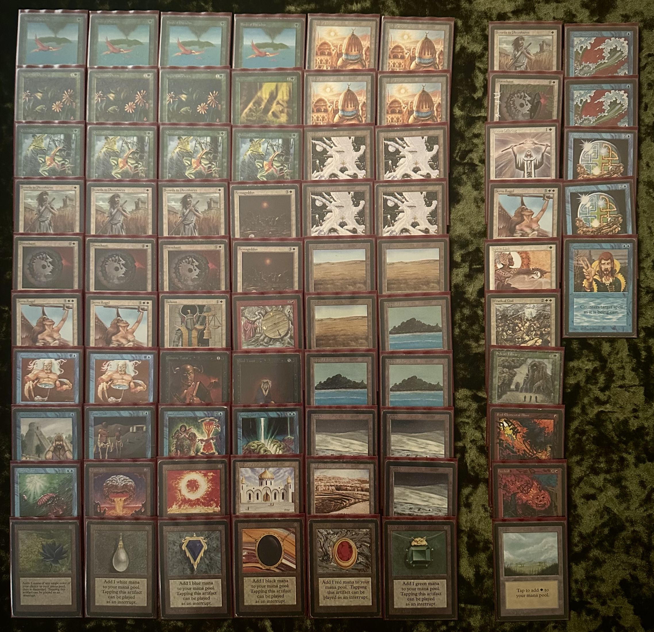 My foray into Alpha-only did one great thing: it got me off of Kird Ape for good. I had filled that slot with Scryb Sprites and found that having the one less creature be susceptible to City in a Bottle along with it being a flyer, provided enough incentive to run it over Kird Ape going forward. I ran this at the SCG Con Old School tournament and ended up again around the middle of the lot: 17th out of 46 players. But look how beautiful it is! This was one of many times that I would say “my deck is done” only to change around some cards a few weeks later. But this was when I realized all my Alpha purchasing had already put me at 1/3 of a complete Alpha set and that most of what I had already was the hard stuff. I shifted my collecting focus toward finishing the set.